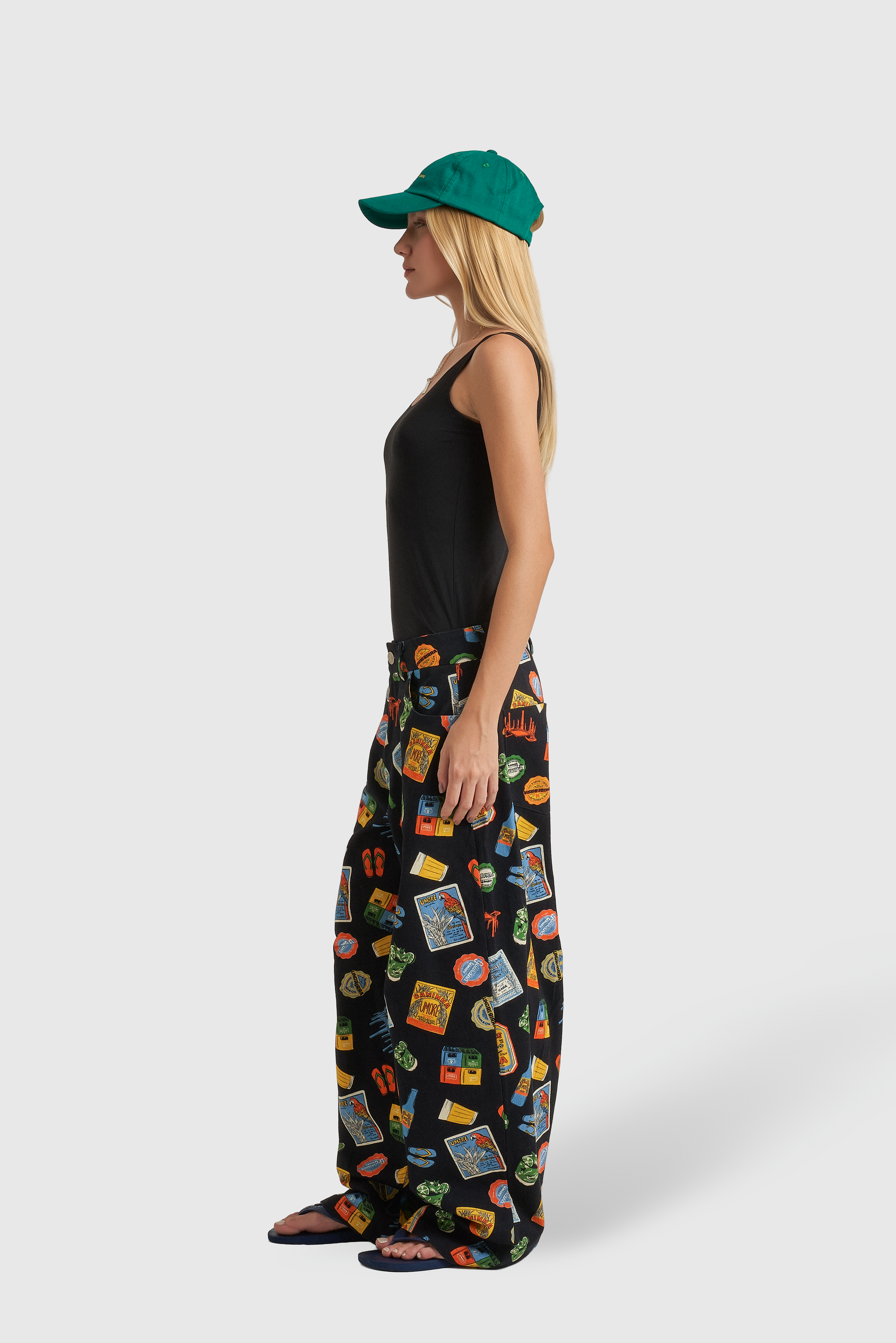 A estampa, com elementos em escala menor, trazem referências clássicas do nosso Brasil: o copo americano, petiscos de boteco, azulejos, tipografias retrô e aquele humor irreverente que só a gente entende.