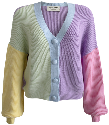 O Euphoric Candy é o tipo de peça que você se apaixona de cara. São 5 tons de candy colors: vanilla, lavanda, rosa pálido, azul comfy e verde ice, que fazem com que ele seja uma peça extremamente harmônica e estilosa. Ele é feito de cashmere light, um dos fios mais macios e confortáveis do nosso catálogo e, como se não bastasse, sua finalização foi feita com botões cobertos, exatamente do mesmo tom do azul comfy, que fazem toda a diferença no visual do acabamento.