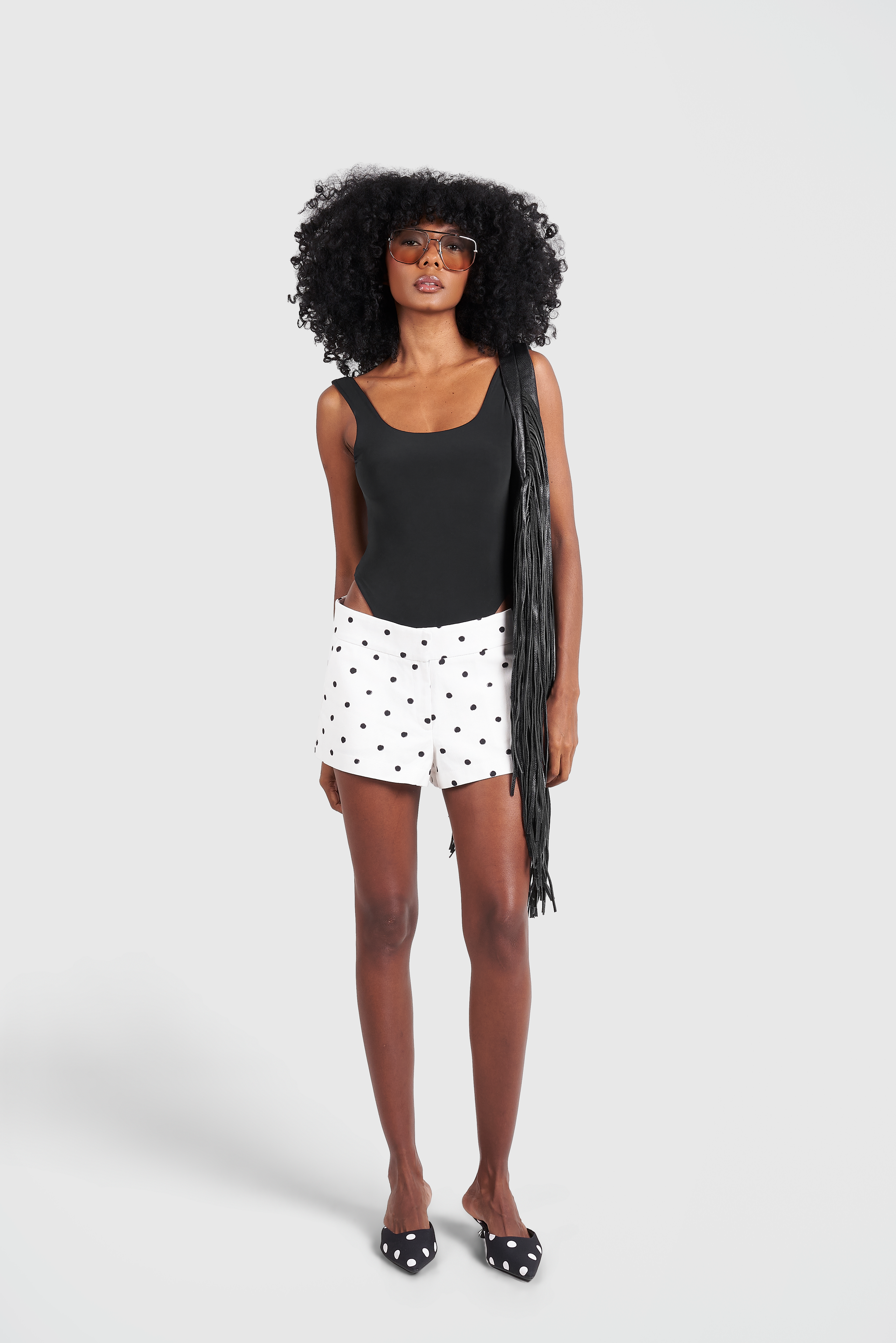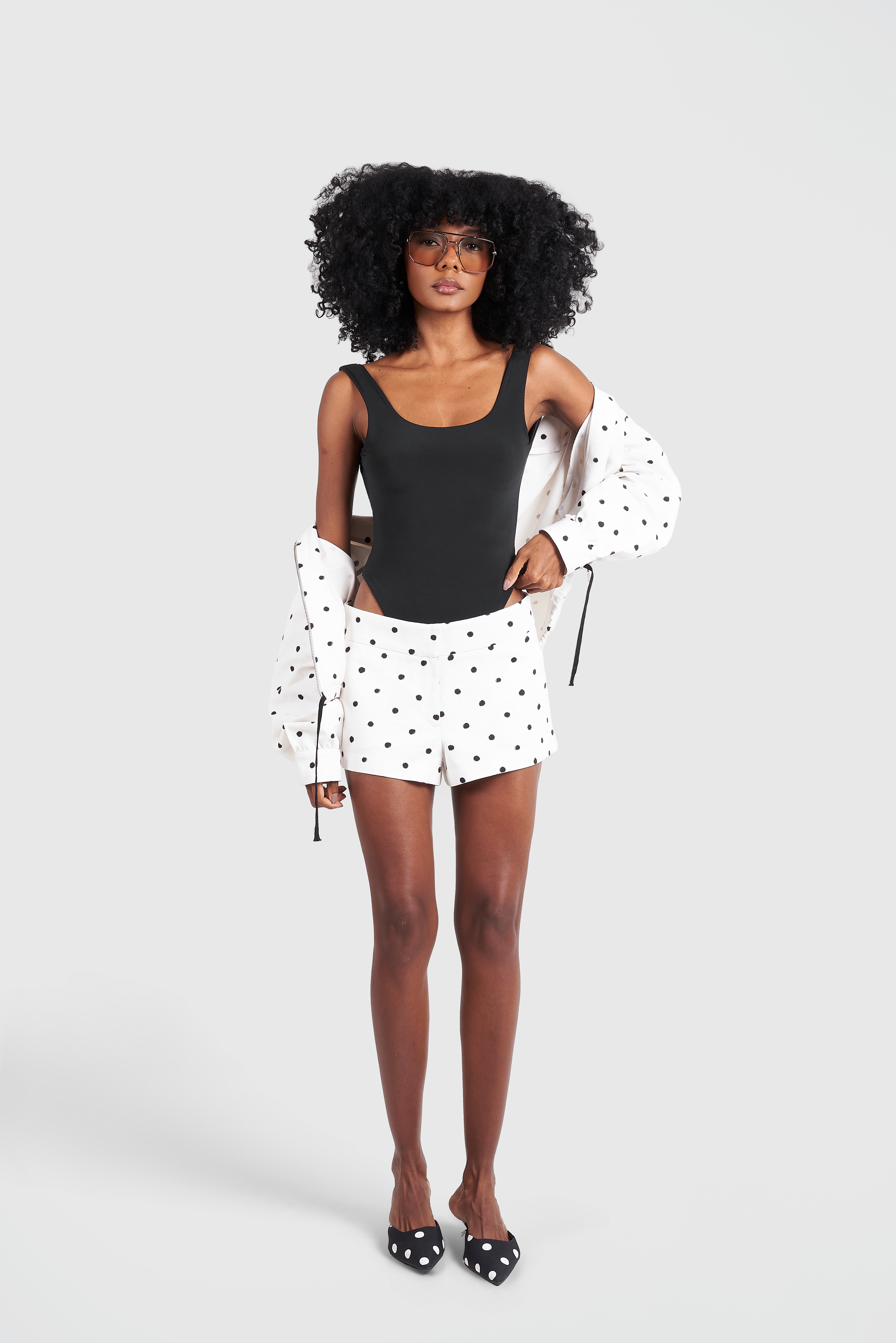 Shorts Polka White: resgata o charme vintage com sensibilidade contemporânea. Confeccionado em sarja resistente, apresenta modelagem ajustada que valoriza a silhueta. A estampa poá, símbolo de sofisticação atemporal, posiciona-se como protagonista das tendências de 2025, oferecendo uma releitura moderna de um clássico que transcende as estações. Versátil e elegante, é a peça ideal para compor looks que transitam entre o casual refinado e o sofisticado descontraído.