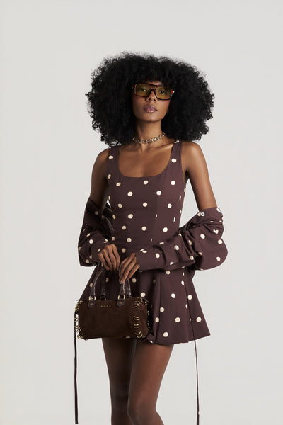 Vestido Polka Brown: o encontro entre tradição e inovação em uma única peça. Tecido em algodão 100% premium, sua silhueta godê oferece liberdade de movimento sem comprometer a elegância. O padrão poá, marca registrada da coleção 2025, reinterpreta um motivo intemporal com sensibilidade contemporânea, confirmando que o verdadeiro estilo transcende ciclos passageiros. Naturalmente versátil, flui entre contextos com refinamento, do casual elevado ao elegante descontraído, adaptando-se com distinção a cada momento da sua vida.